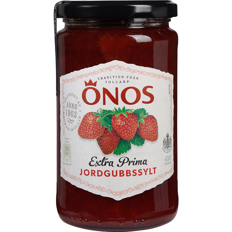 ÖNOS Extra prima Jordgubbssylt- Rikligt med söta jordgubbar ger den härligt fylliga smaken du kan njuta av i vår klassiska jordgubbssylt. Från lilla Tollarp i Skåne har vi i över 100 år tillagat livsmedelsprodukter av bästa kvalitet. Vi kompromissar aldrig på tillagningsmetoder eller recept när vi producerar vår sylt. Genom att alltid använda de bästa råvarorna kan vi stolt säga att vi vet hur kvalitet ska smaka.